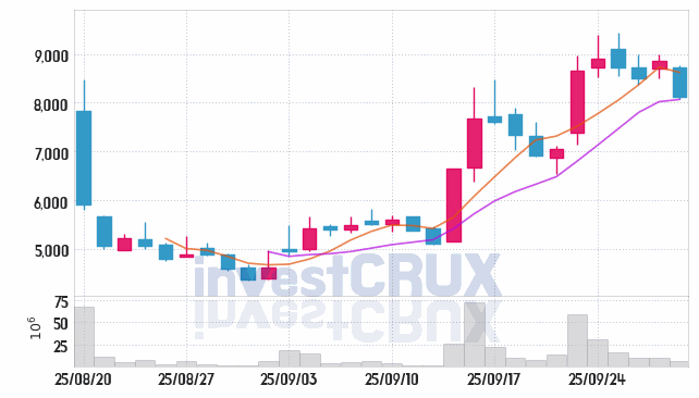 반대로, 5일간 주가 데이터 중 가장 높은 저가는 25년 09월 25일에 기록했던 8,550원인 반면 최저 저가는 25년 09월 23일에 거래되었던 7,130원입니다.