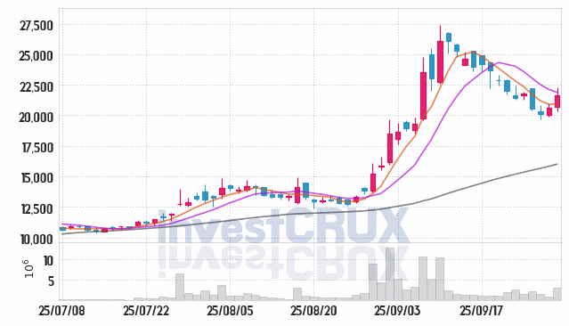 최고 거래량 기록은 25년 09월 23일에 나타난 2,747,048주이며, 최저 수치는 25년 09월 29일의 1,015,951주입니다.