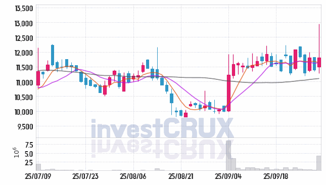 시가 : 11,500원, 고가 : 12,950원, 저가 : 11,270원