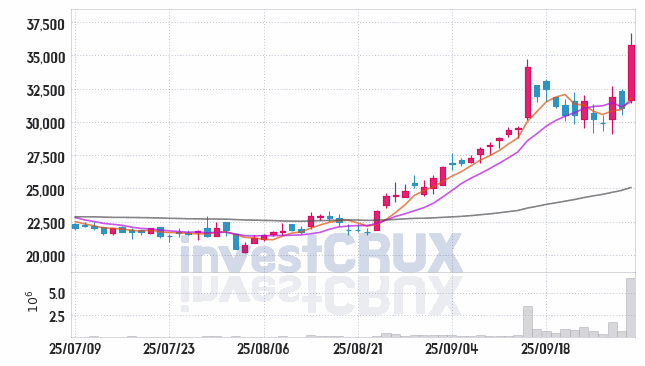시가 : 31,650원, 고가 : 36,650원, 저가 : 31,400원