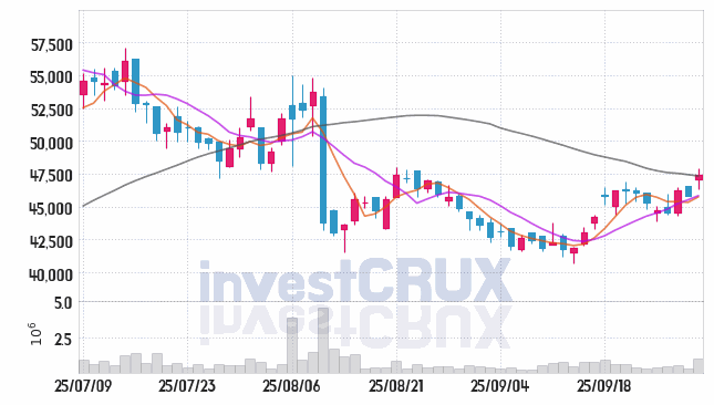 시가 : 47,050원, 고가 : 47,900원, 저가 : 46,300원