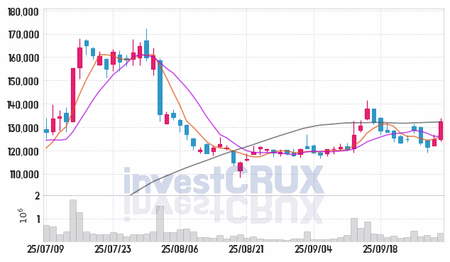 시가 : 124,700원, 고가 : 134,000원, 저가 : 124,000원