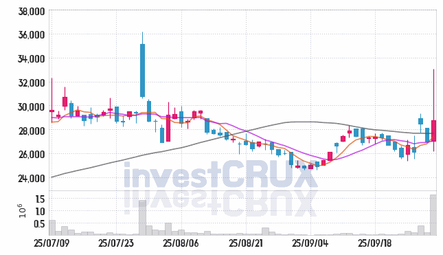 시가 : 27,050원, 고가 : 33,050원, 저가 : 26,200원