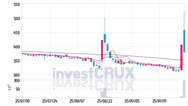 반대로, 5일간 주가 데이터 중 가장 높은 저가는 25년 09월 25일에 기록했던 322원인 반면 최저 저가는 25년 09월 30일에 거래되었던 307원입니다.