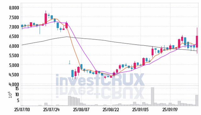 시가 : 5,910원, 고가 : 6,950원, 저가 : 5,580원