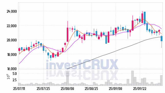 시가 : 20,500원, 고가 : 20,650원, 저가 : 18,860원