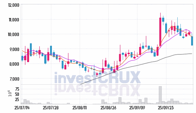 시가는 전일의 종가와 비교해 -270원(-2.7%) 차이있는 것으로 분석됩니다.
