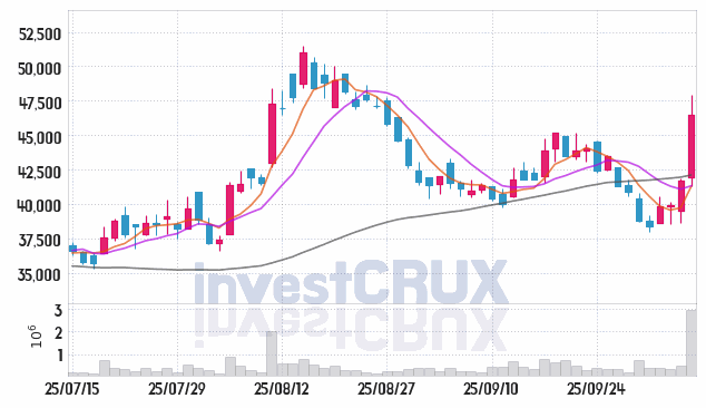 시가 : 41,900원, 고가 : 47,900원, 저가 : 41,300원