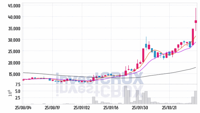 다음 그림은 25년 11월 03일의 한국피아이엠 주가 차트(그래프)입니다.