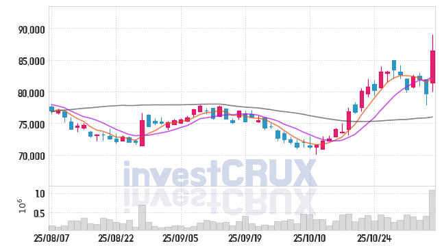 시가 : 81,400원, 고가 : 89,000원, 저가 : 80,000원