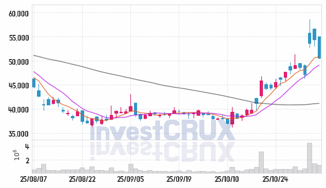 반대로, 5일간 주가 데이터 중 가장 높은 저가는 25년 11월 05일에 기록했던 53,000원인 반면 최저 저가는 25년 11월 03일에 거래되었던 46,300원입니다.