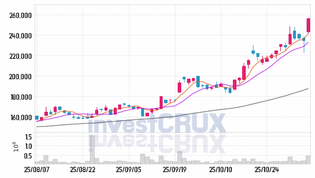 시가 : 243,500원, 고가 : 257,000원, 저가 : 242,000원