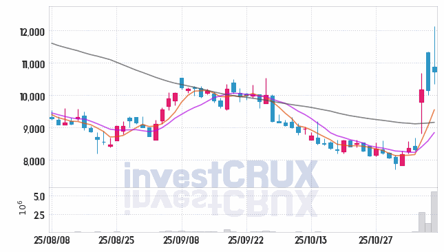 고가와 저가는 전일 종가에 비해서 각각 1,980원(19.5%), 180원(1.8%) 차이가 있는 것으로 분석됩니다.