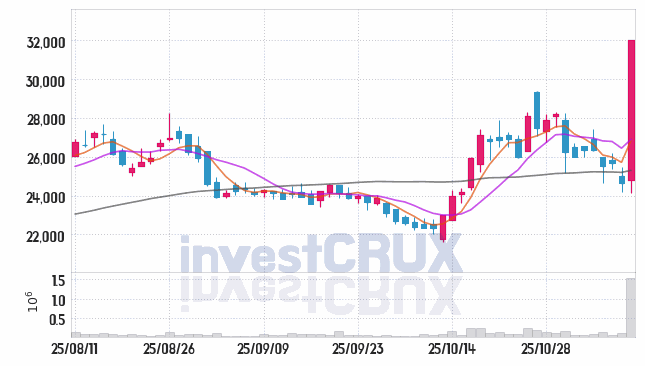 시가 : 24,800원, 고가 : 32,000원, 저가 : 24,150원