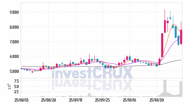 시가 : 6,840원, 고가 : 8,330원, 저가 : 6,730원