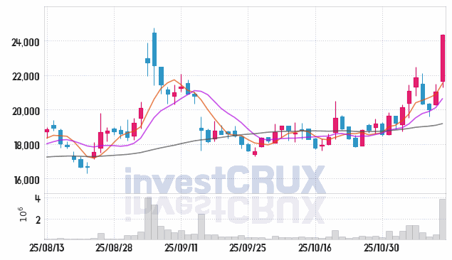 반대로, 5일간 주가 데이터 중 가장 높은 저가는 25년 11월 06일에 기록했던 20,800원인 반면 최저 저가는 25년 11월 05일에 거래되었던 19,510원입니다.