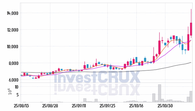 다음 그림은 25년 11월 12일의 피앤에스로보틱스 주가 차트(그래프)입니다.