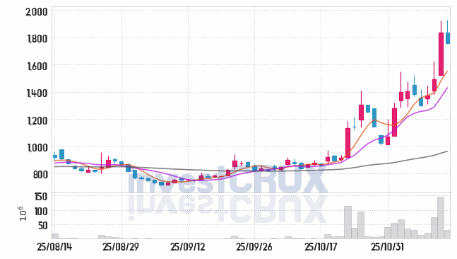 시가 : 1,835원, 고가 : 1,929원, 저가 : 1,750원