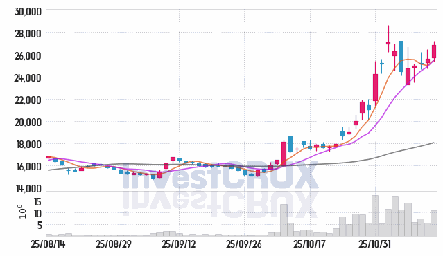 시가 : 25,700원, 고가 : 27,200원, 저가 : 25,350원