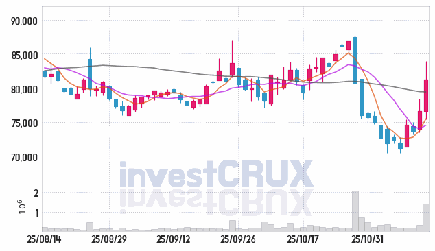시가 : 76,600원, 고가 : 83,900원, 저가 : 75,400원