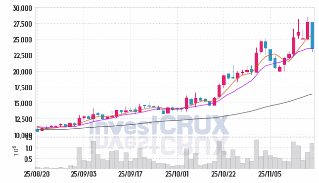 시가 : 27,600원, 고가 : 27,600원, 저가 : 23,000원