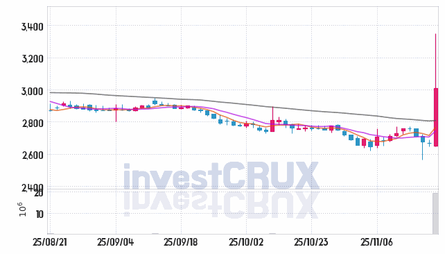 시가 : 2,650원, 고가 : 3,350원, 저가 : 2,645원