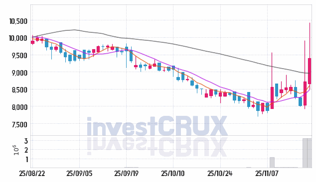 시가 : 8,650원, 고가 : 10,430원, 저가 : 8,480원