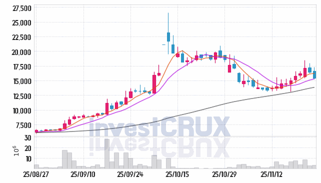 반대로, 5일간 주가 데이터 중 가장 높은 저가는 25년 11월 24일에 기록했던 16,240원인 반면 최저 저가는 25년 11월 18일에 거래되었던 13,090원입니다.