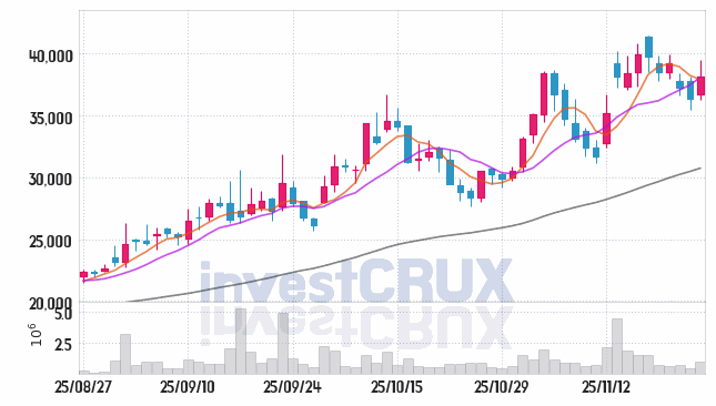 시가 : 36,750원, 고가 : 39,500원, 저가 : 36,250원