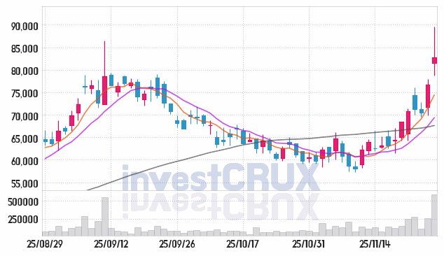 시가 : 81,500원, 고가 : 89,600원, 저가 : 78,700원