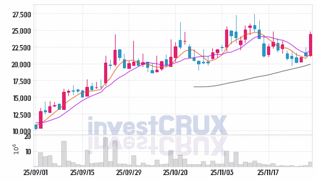 시가 : 21,200원, 고가 : 24,850원, 저가 : 21,000원
