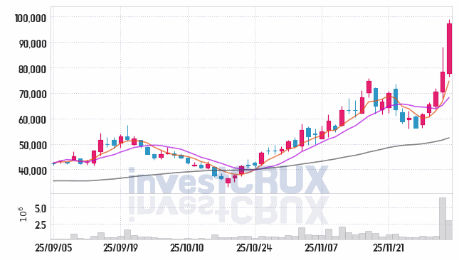 시가 : 77,800원, 고가 : 99,000원, 저가 : 76,300원