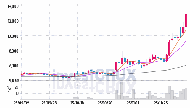 시가 : 11,240원, 고가 : 13,740원, 저가 : 11,130원