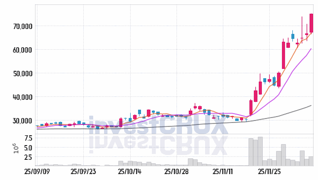 최고 거래량 기록은 25년 12월 04일에 나타난 4,090,185주이며, 최저 수치는 25년 12월 03일의 1,266,669주입니다.