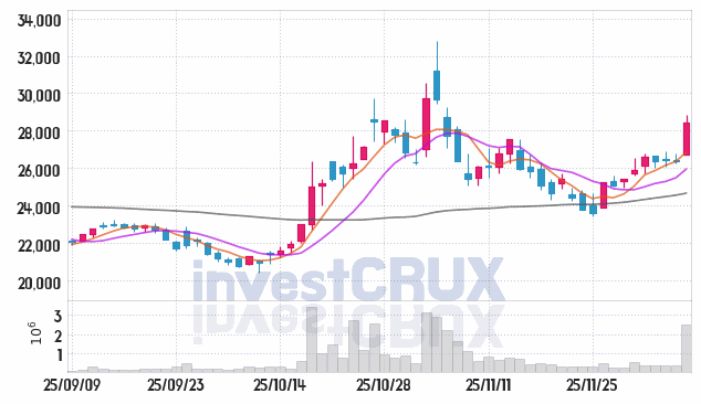 시가 : 26,700원, 고가 : 28,850원, 저가 : 26,700원