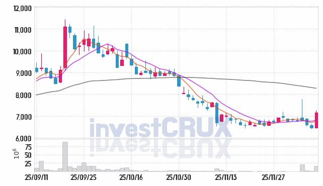 시가 : 6,450원, 고가 : 7,270원, 저가 : 6,450원