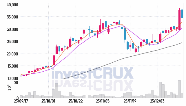 시가 : 37,800원, 고가 : 37,900원, 저가 : 34,050원