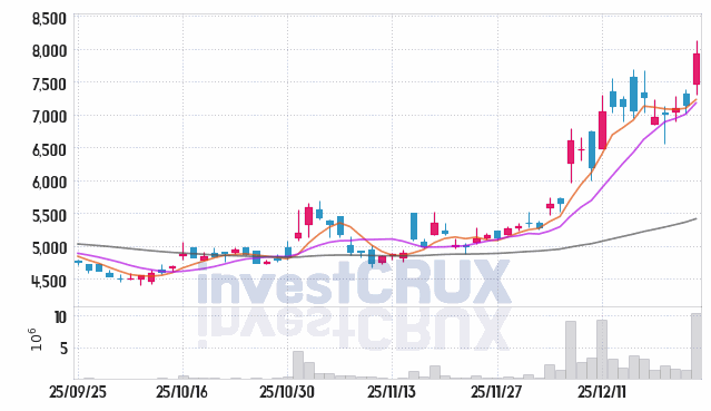 시가 : 7,480원, 고가 : 8,130원, 저가 : 7,310원