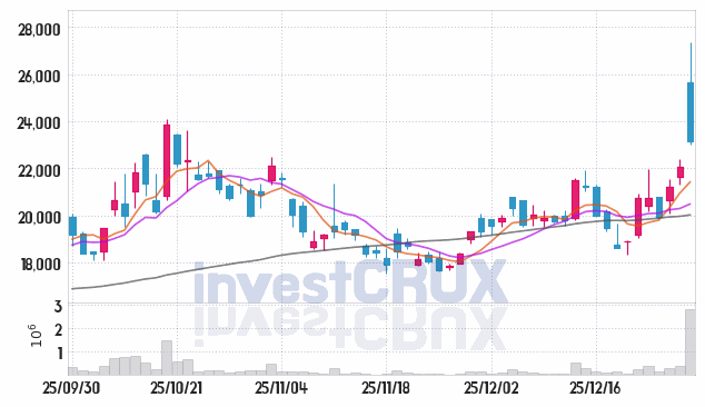 시가 : 25,650원, 고가 : 27,350원, 저가 : 23,000원