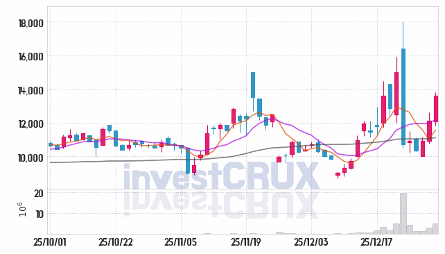 시가 : 12,080원, 고가 : 13,790원, 저가 : 11,820원