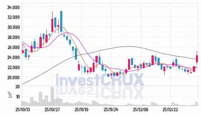 시가 : 22,950원, 고가 : 25,200원, 저가 : 22,500원