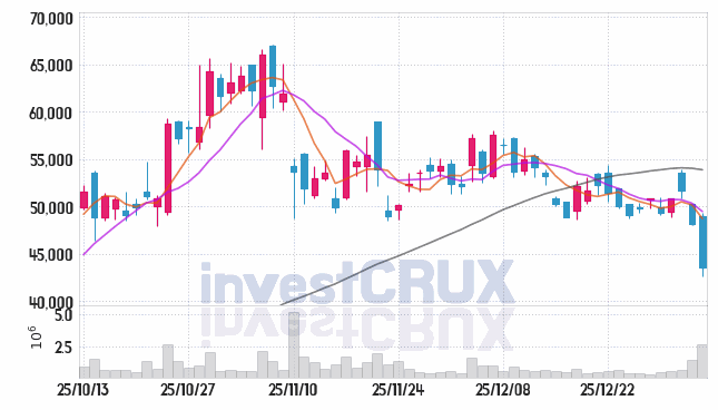 시가 : 48,950원, 고가 : 49,350원, 저가 : 42,600원