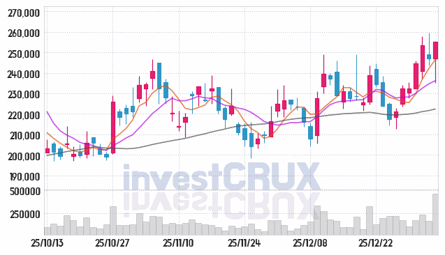 시가 : 247,000원, 고가 : 255,500원, 저가 : 235,000원