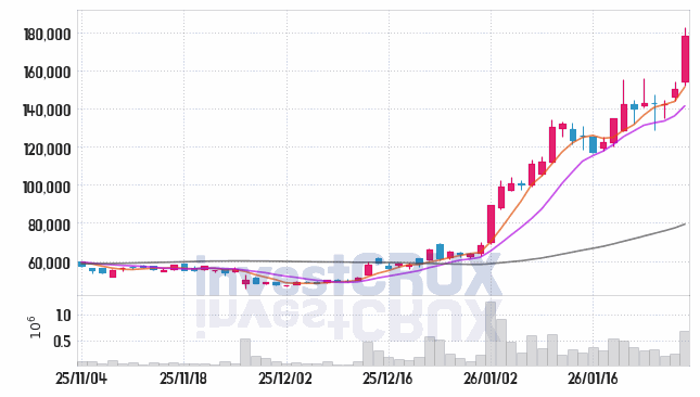 현재 시점(01월 29일)을 기준으로 쎄트렉아이 주가는 178,100원이며, 직전 거래일의 종가 150,000원과 비교해 약 18.7 퍼센트 상승했습니다.