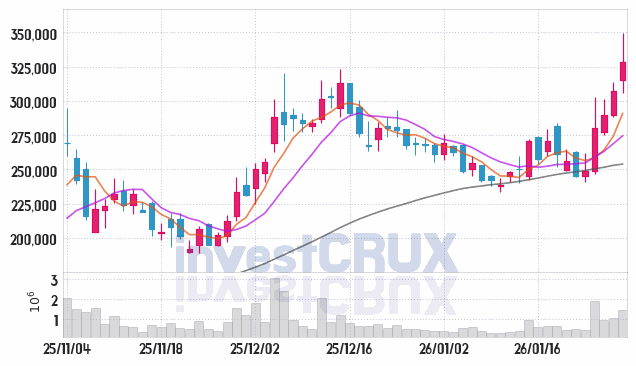 시가 : 315,000원, 고가 : 349,500원, 저가 : 305,500원