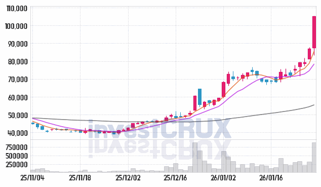 시가 : 87,500원, 고가 : 105,500원, 저가 : 83,300원