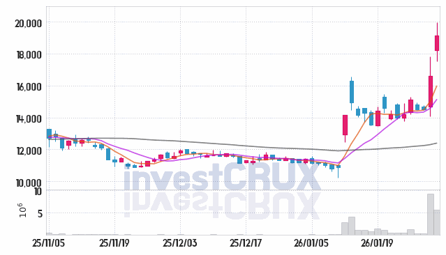 시가 : 18,200원, 고가 : 19,960원, 저가 : 17,520원