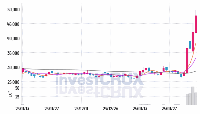 시가 : 41,900원, 고가 : 49,650원, 저가 : 41,750원