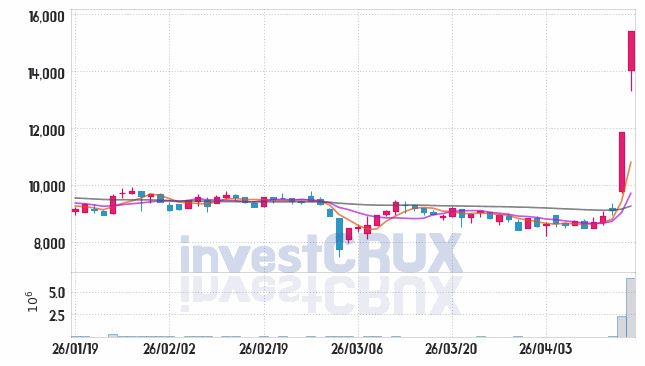 반대로, 5일간 주가 데이터 중 가장 높은 저가는 26년 04월 15일에 기록했던 9,710원인 반면 최저 저가는 26년 04월 10일에 거래되었던 8,500원입니다.