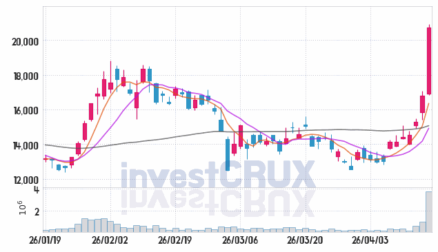 시가 : 16,900원, 고가 : 20,900원, 저가 : 16,850원